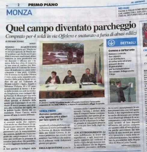 Monza, 24 maggio 2019. È partita da un’operazione della Polizia Locale l’indagine della Procura della Repubblica di Monza che ieri ha portato al sequestro preventivo di una vasta area verde in via dell’Offelera, nel quartiere di Sant’Albino sul confine con Agrate, Brugherio e Concorezzo.