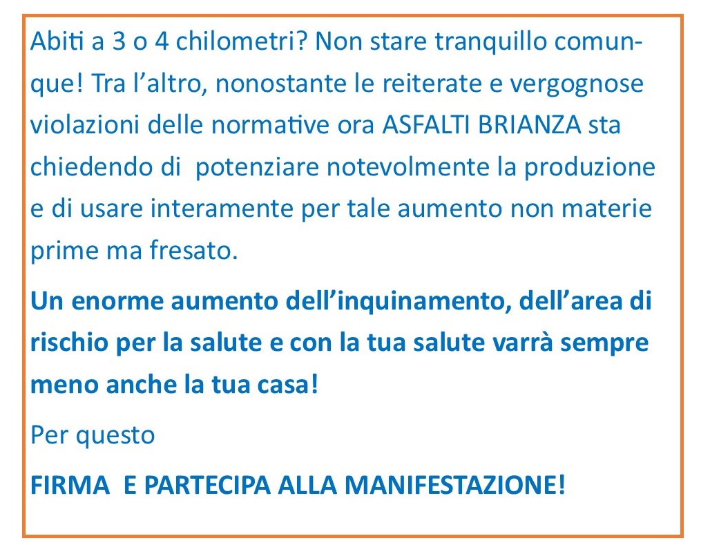 FIRMA QUI SOTTO PER LA CHIUSURA O LA DELOCALIZZAZIONE DI ASFALTI BRIANZA: