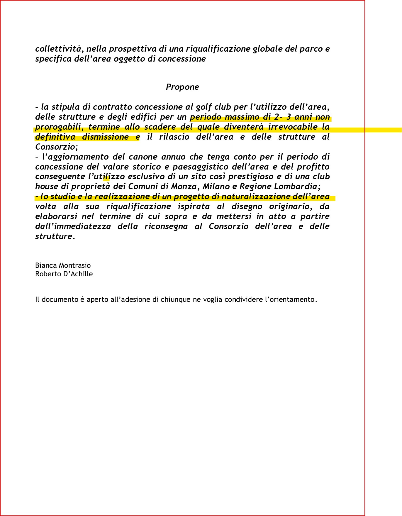 Importante e condivisibile documento a tutela del Parco e della Villa Reale. Le evidenziazioni in giallo sono nostre.