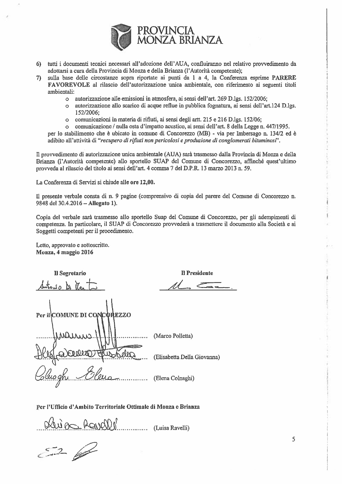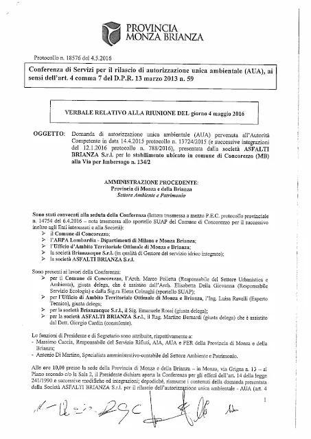 4/5/2016 - VERBALE CONFERENZA SERVIZI CHE SOSTANZIALMENTE RILASCIA L'AUA AD ASFALTI BRIANZA