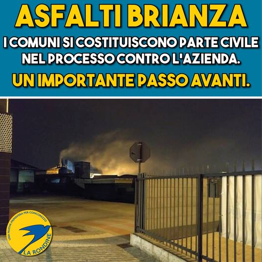 Le amministrazioni comunali di Agrate, Concorezzo e Monza si costituiranno parte civile nel processo a carico dell'azienda. Non possiamo che dirci soddisfatti per questa presa di posizione corale, a nostro avviso doverosa. Pare lontano il tempo in cui certa politica sottovalutava visibilmente il problema, promuovendo inconcludenti tavoli concertativi con l'azienda, temporeggiando e finanche accusandoci di essere estremisti e tendenziosi.